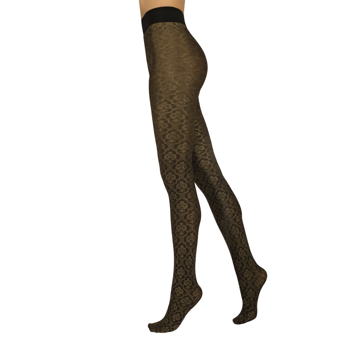 Collant 80 den, tutto nudo, fantasia effetto damascato lucido bicolore, cinturino ultra confort. Art. 1211743